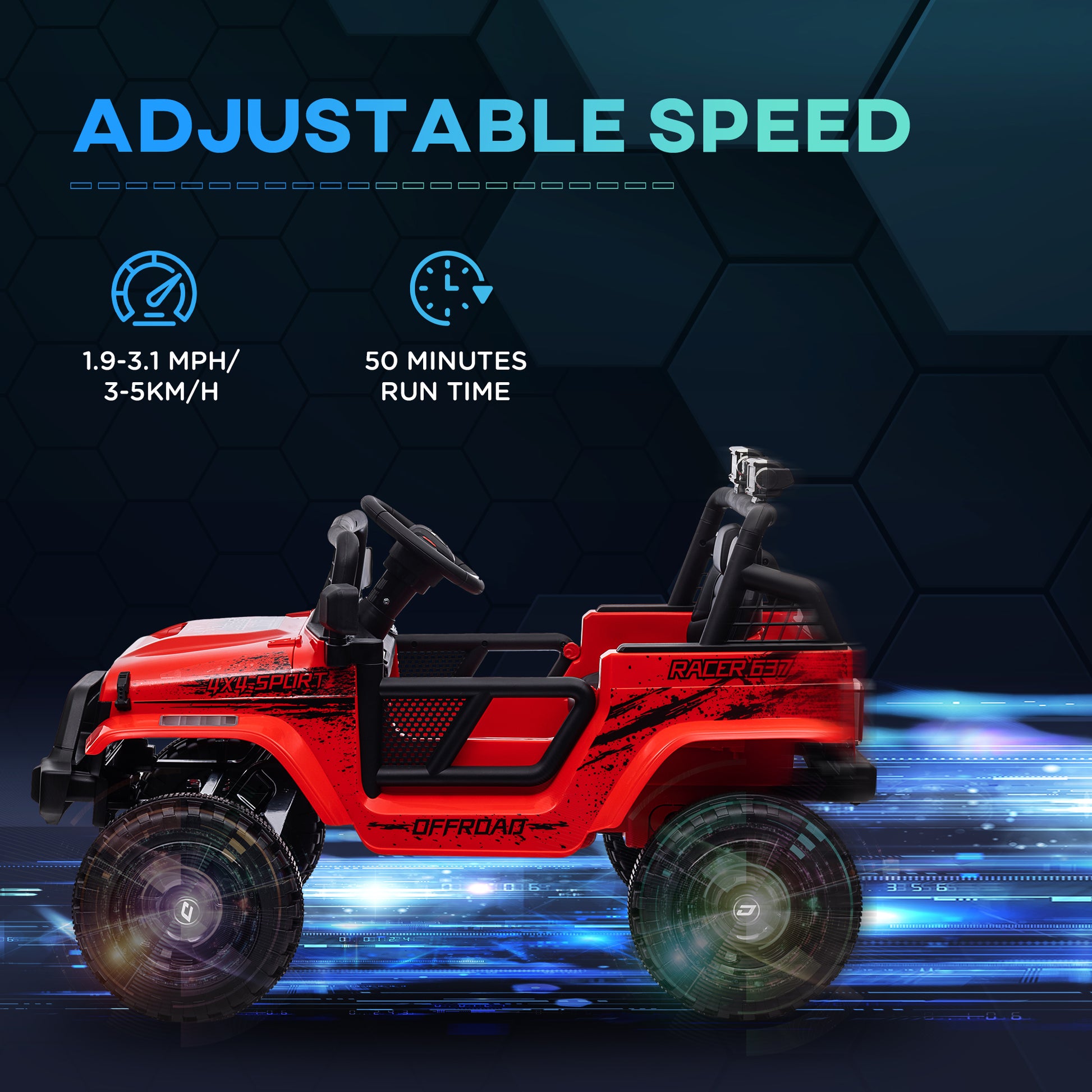 Adventure awaits your little driver with the Qaba 12V Kids UTV! Equipped with dual motors for up to 50 minutes of fun and four spring-suspension wheels, it ensures a smooth ride on various terrainsAdventure awaits your little driver with the Qaba 12V Kids UTV! Equipped with dual motors for up to 50 minutes of fun and four spring-suspension wheels, it ensures a smooth ride on various terrains