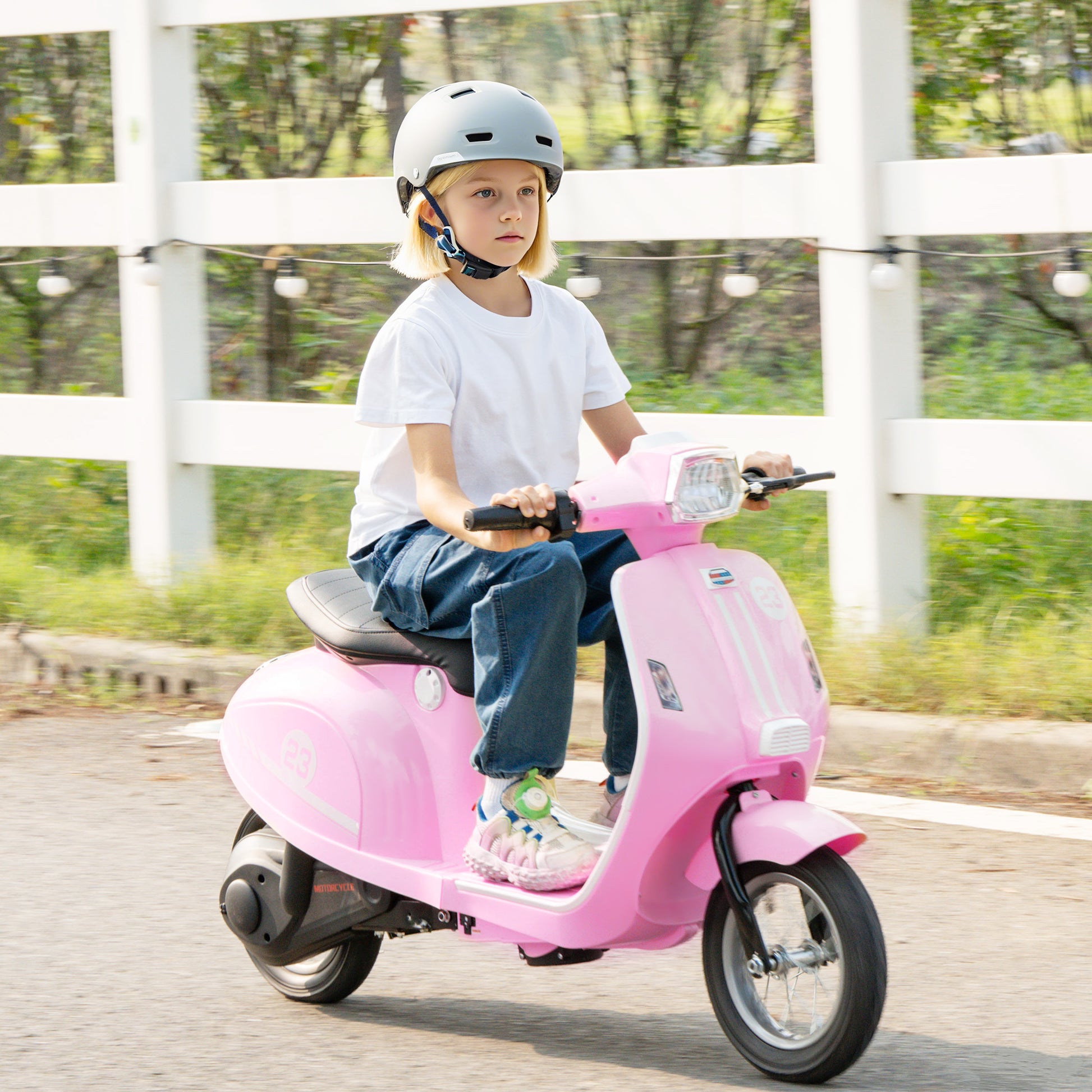 MegaMart 24V Kids Motorcycle with 3-Speed, Electric Motorcycle with Rear Suspension and LED Lights for 8-12 Years Old, Pink