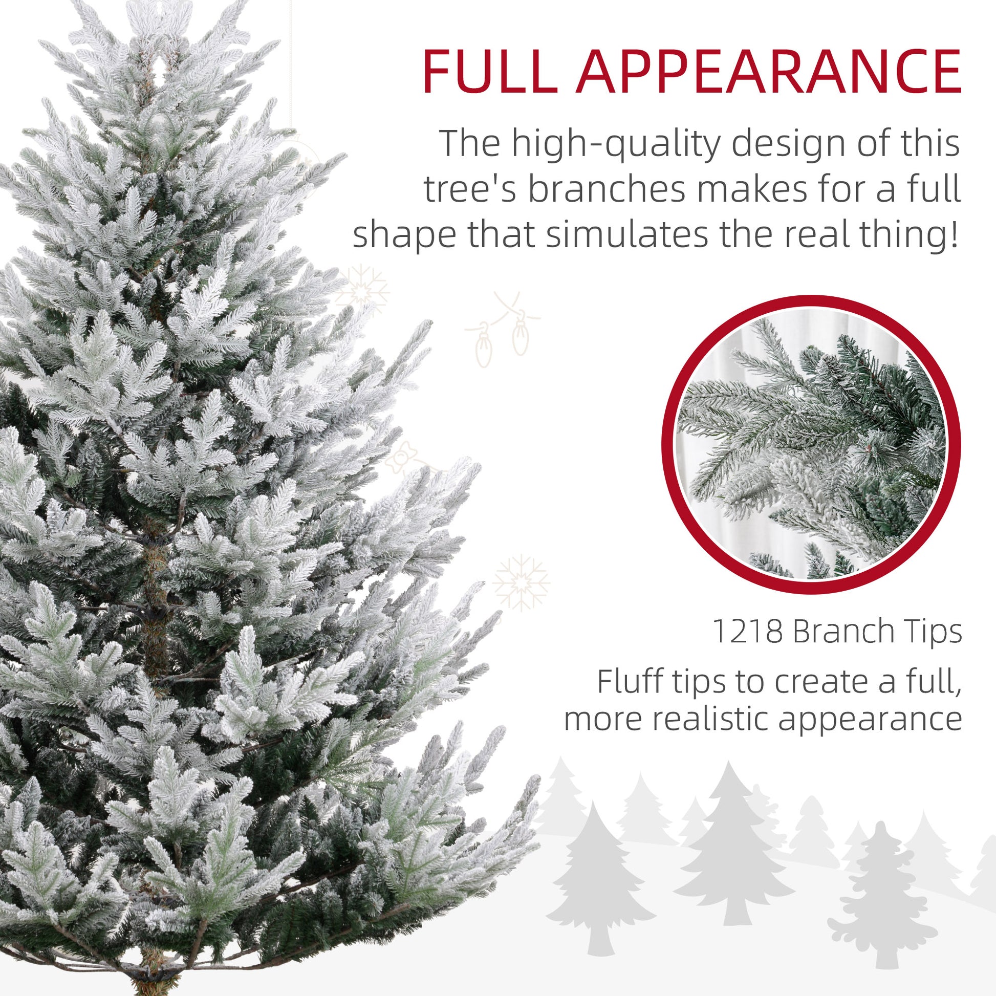 MegaMart 7.5 FT Artificial Christmas Tree, Flocked Hinged Xmas Tree with 1218 Tips, Steel Base, Auto Open, Green