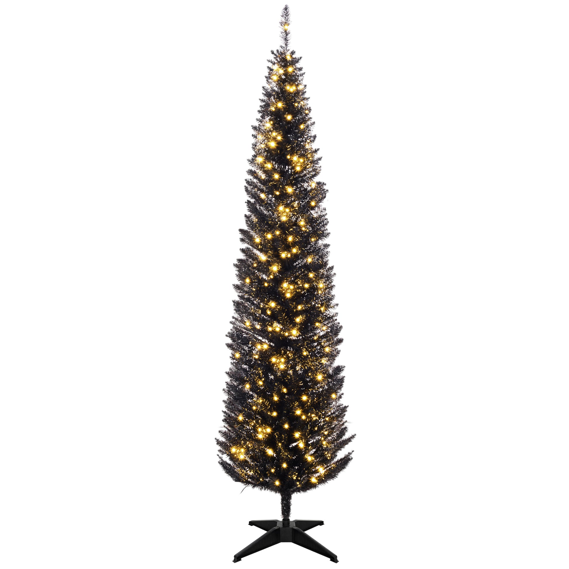 MegaMart 7ft Pencil Christmas Tree, Slim Artificial Christmas Tree with Realistic Branches and Warm White LED Lights, Black